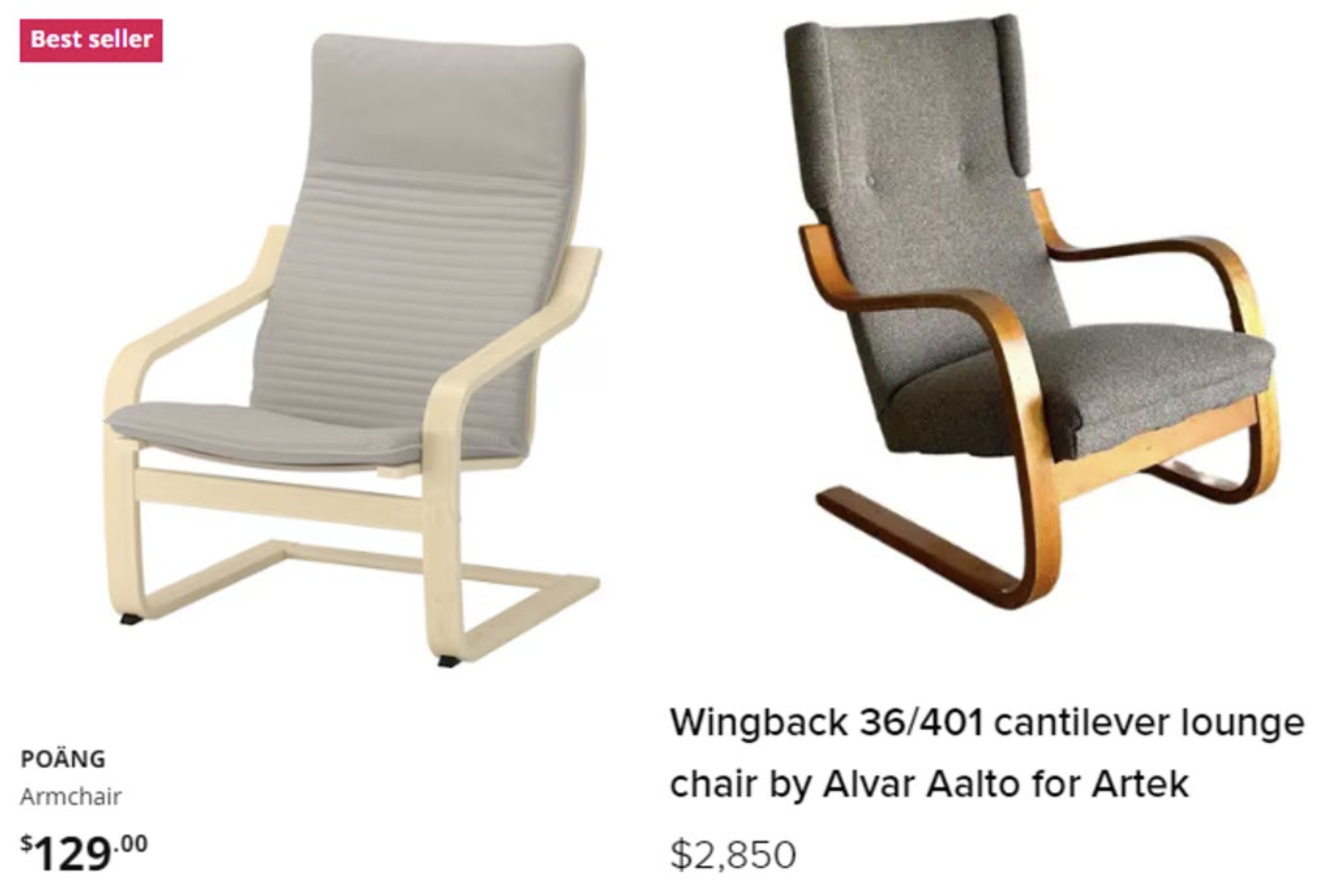 A comparable chair from Finnish design firm Artek runs $2,850. Same bentwood design. Same basic materials. Thirty-six times the price.